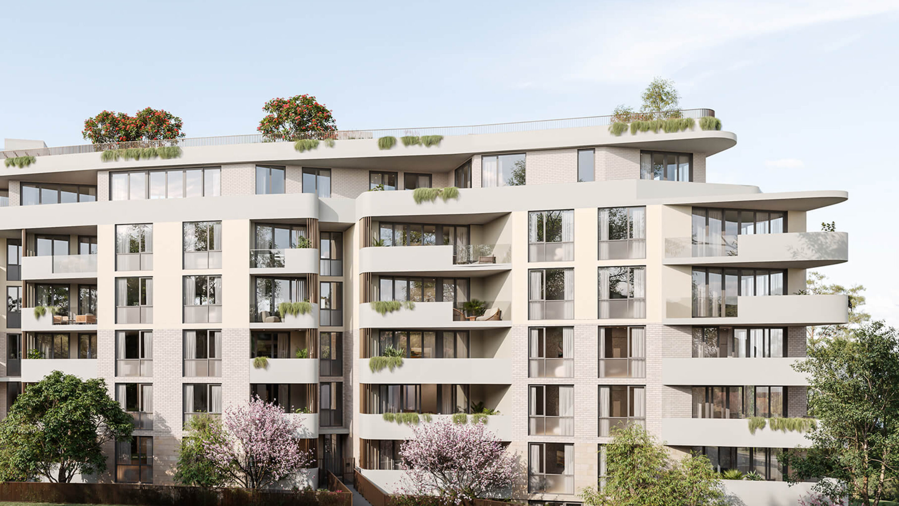 Perched on top of a hill in Lindfield, with a panoramic outlook, this distinctive residential building features 36 apartments set across six levels. The three and four-bedroom residences include European-styled interiors and balconies boasting enclave views.